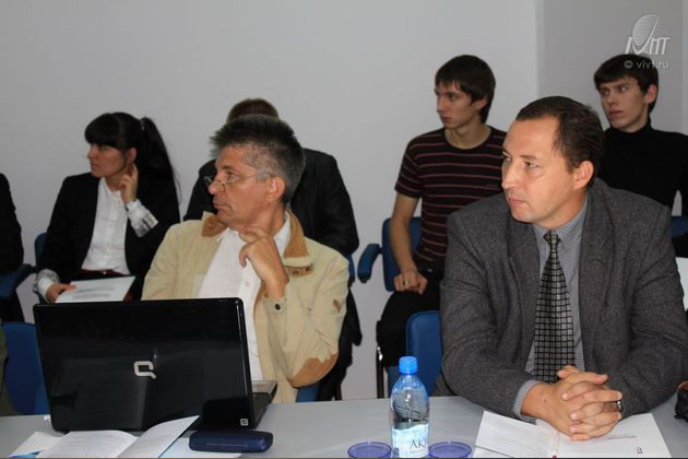 В 10.15 прошла пресс-конференция, в которой участвовали: ректор РосНОУ – Зернов В.А., президент ВИВТ Львович Я.Е., заведующий кафедрой «Персональной электроники» Московского государственного университета приборостроения и информатики Сахаров Ю.С. Отличительная черта Всероссийской научной конференции «Молодежь и современные информационные технологии» - это насыщенная деловая программа. С большим успехом прошло пленарное заседание, в котором приняли участие: - Председатель Совета Ассоциации негосударственных вузов России, член аккредитационной коллегии Министерства образования, член Российского общественного совета по развитию образования, ректор Российского нового университета, доктор технических наук, профессор – Зернов В.А., - Руководитель управления информационных технологий Воронежской области, доктор юридических наук, профессор – Мещеряков В.А., - Президент Воронежского института высоких технологий, аккредитованный эксперт РОСНАНО, Заслуженный деятель науки, доктор технических наук, профессор – Львович Я.Е., -Заведующий кафедрой «Персональной электроники» Московского государственного университета приборостроения и информатики, доктор технических наук, профессор – Сахаров Ю.С., - Ректор Воронежской государственной медицинской академии им. Н.Н. Бурденко, Заслуженный работник высшей школы РФ, доктор медицинских наук, профессор – Есауленко И.Э., - Заместитель Председателя Правления Центрально-Черноземного банка Сбербанка России, доктор технических наук, профессор – Рындин А.А. -Начальник проектного отдела Воронежского института высоких технологий к.ф.-м.н. Волкова Н.В. -Проректор по учебной работе Воронежского института высоких технологий, д.т.н., профессор Кострова В.Н. -Проректор по проектной работе Воронежского института высоких технологий, д.т.н., профессор Чопоров О.Н. Также была организованна работа секций по темам: «Современные технологии электронного доступа к информационным ресурсам и услугам», «Интеллектуальные информационные системы», «Информационные технологии проектирования и управления», «Современные информационные технологии в образовании», «Инновационное развитие общества и информационные технологии», «Теория и практика применения информационных технологий в медицине», «Банковские и офисные информационные технологии». Показать свои разработки молодые ученые приехали из Липецка, Тамбова, Белгорода,Москвы. В рамках конференции прошла церемония награждения участников за лучшие работы, представленные на Всероссийской молодежной конференции.